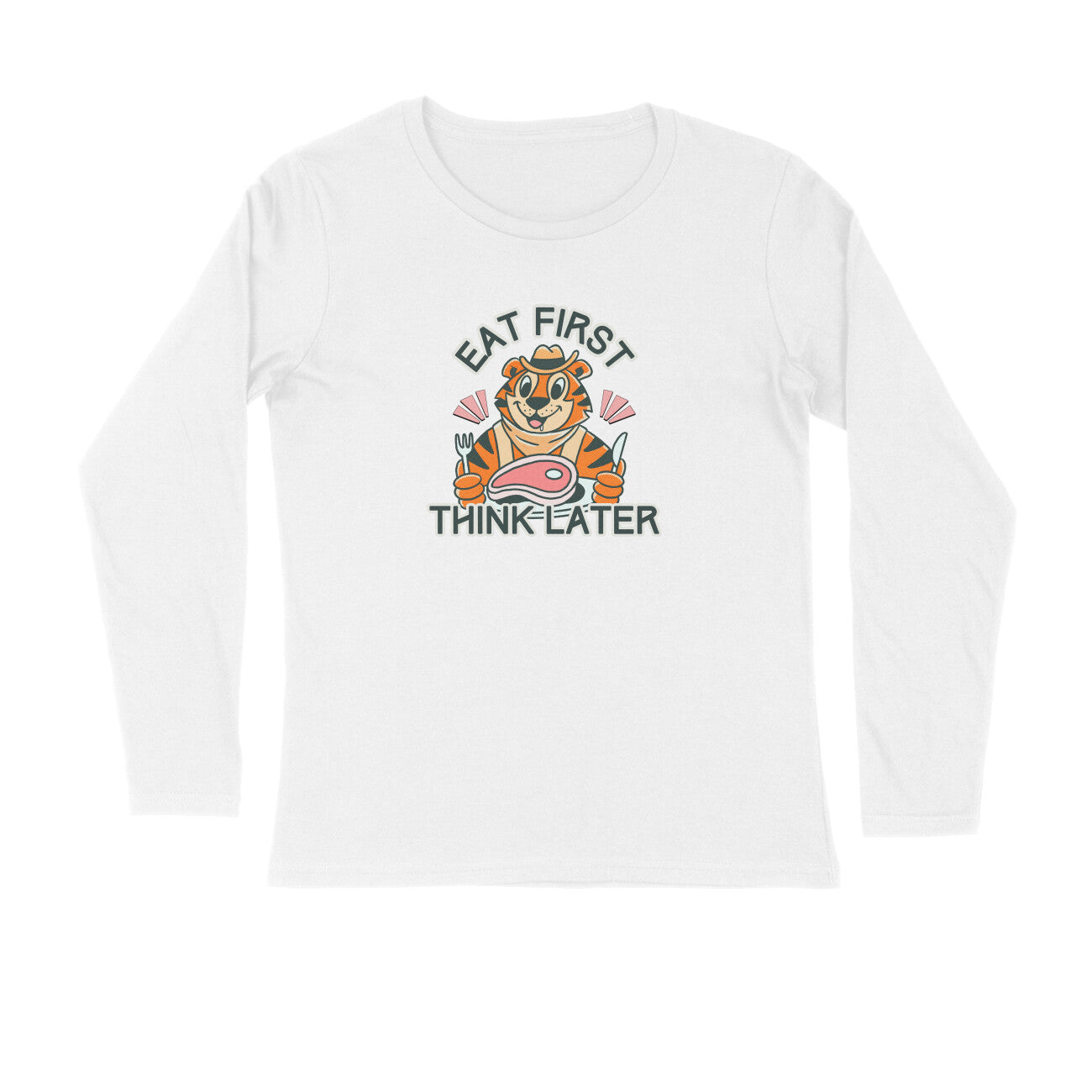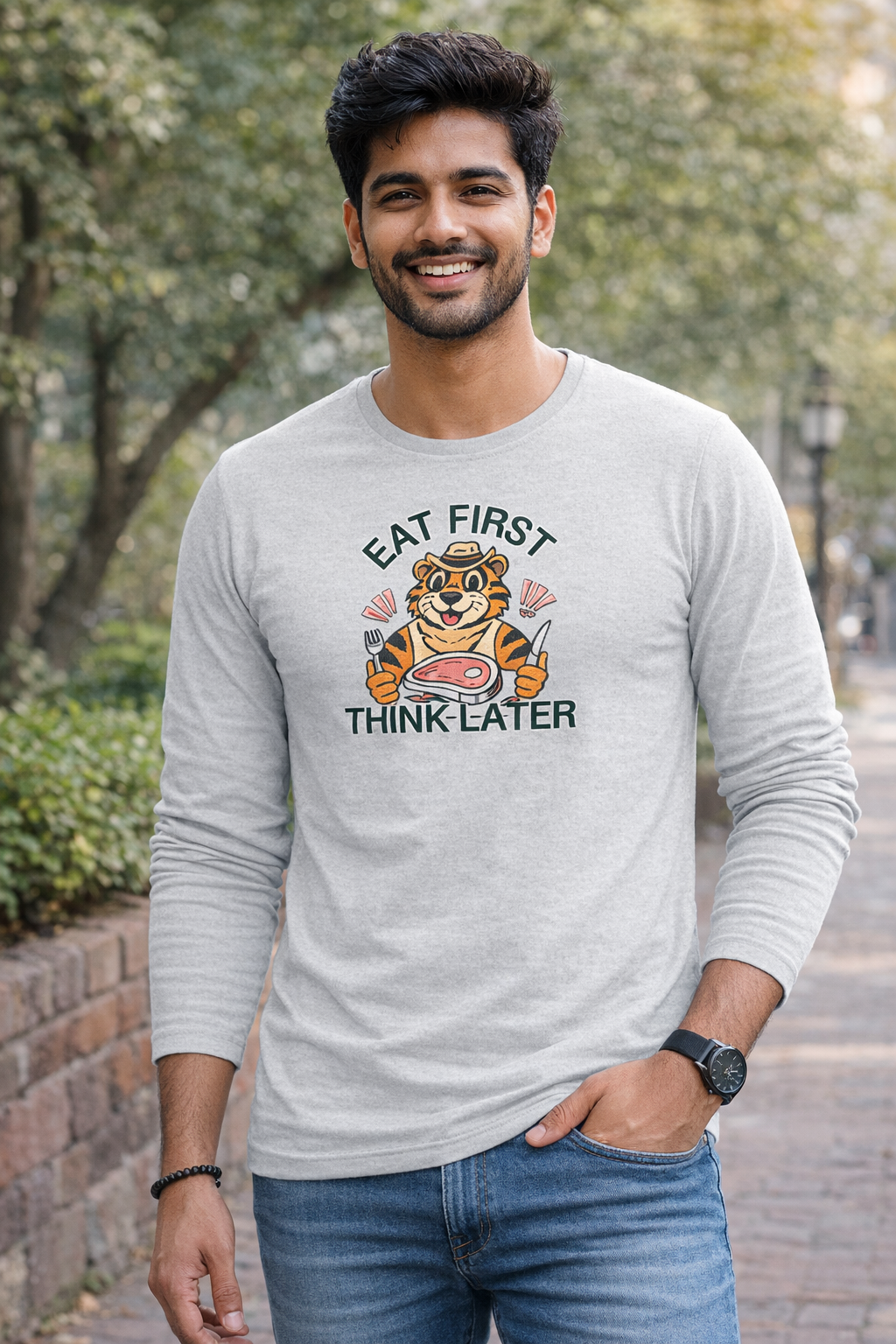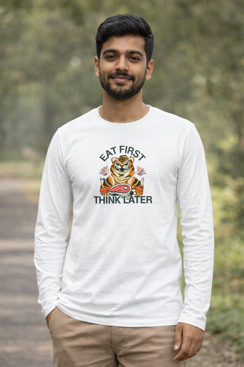 For the food-first kind of days: the Eat First, Think Later unisex full sleeve tee brings fun vibes with everyday comfort. Whether it’s a cold wind or a sunny afternoon, this long sleeve t-shirt keeps you covered in style. Crafted with 180 GSM bio-washed fabric for a smooth, breathable feel, and finished in a regular fit that’s easy to wear anywhere.