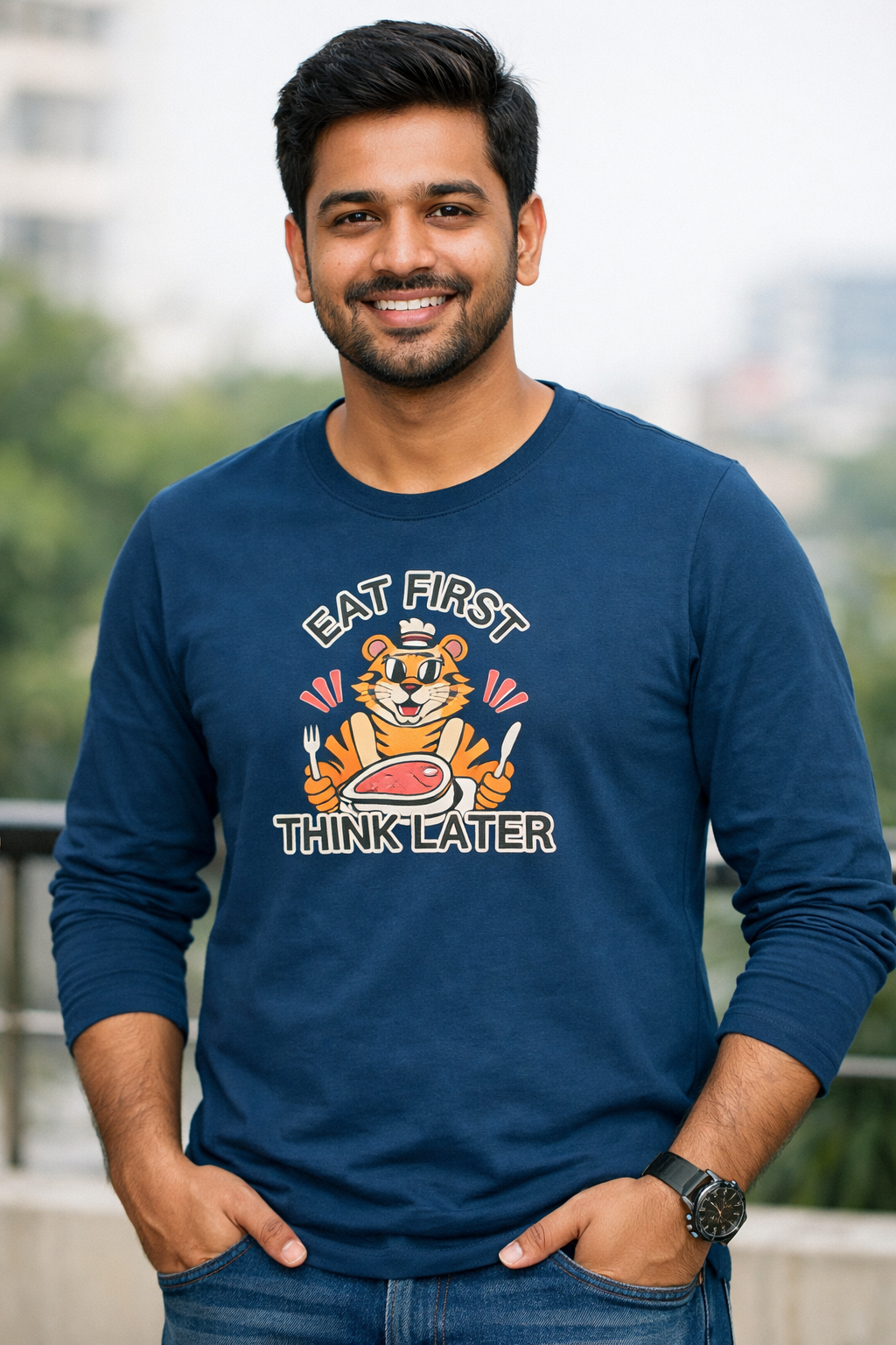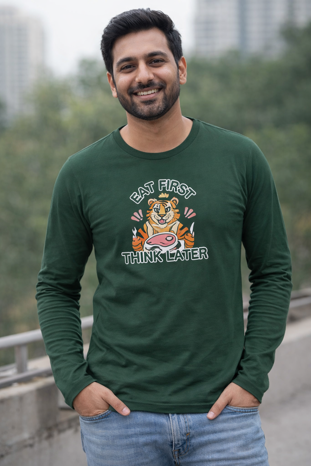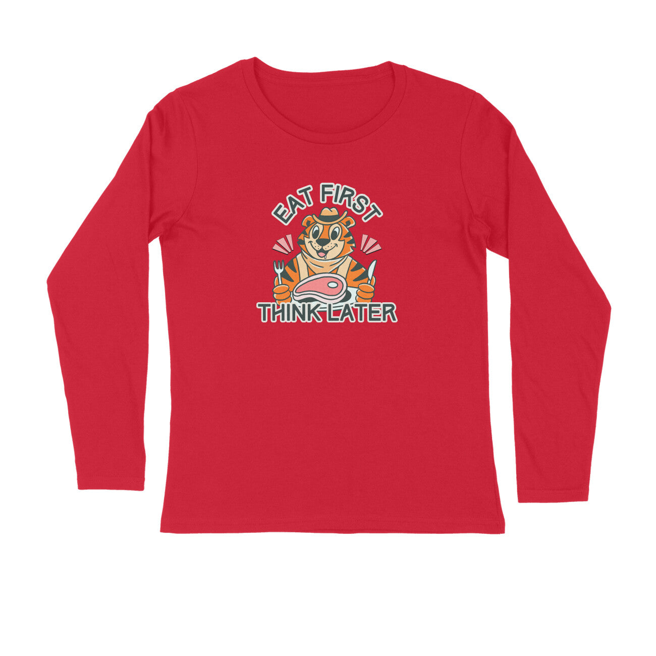 For the food-first kind of days: the Eat First, Think Later unisex full sleeve tee brings fun vibes with everyday comfort. Whether it’s a cold wind or a sunny afternoon, this long sleeve t-shirt keeps you covered in style. Crafted with 180 GSM bio-washed fabric for a smooth, breathable feel, and finished in a regular fit that’s easy to wear anywhere.