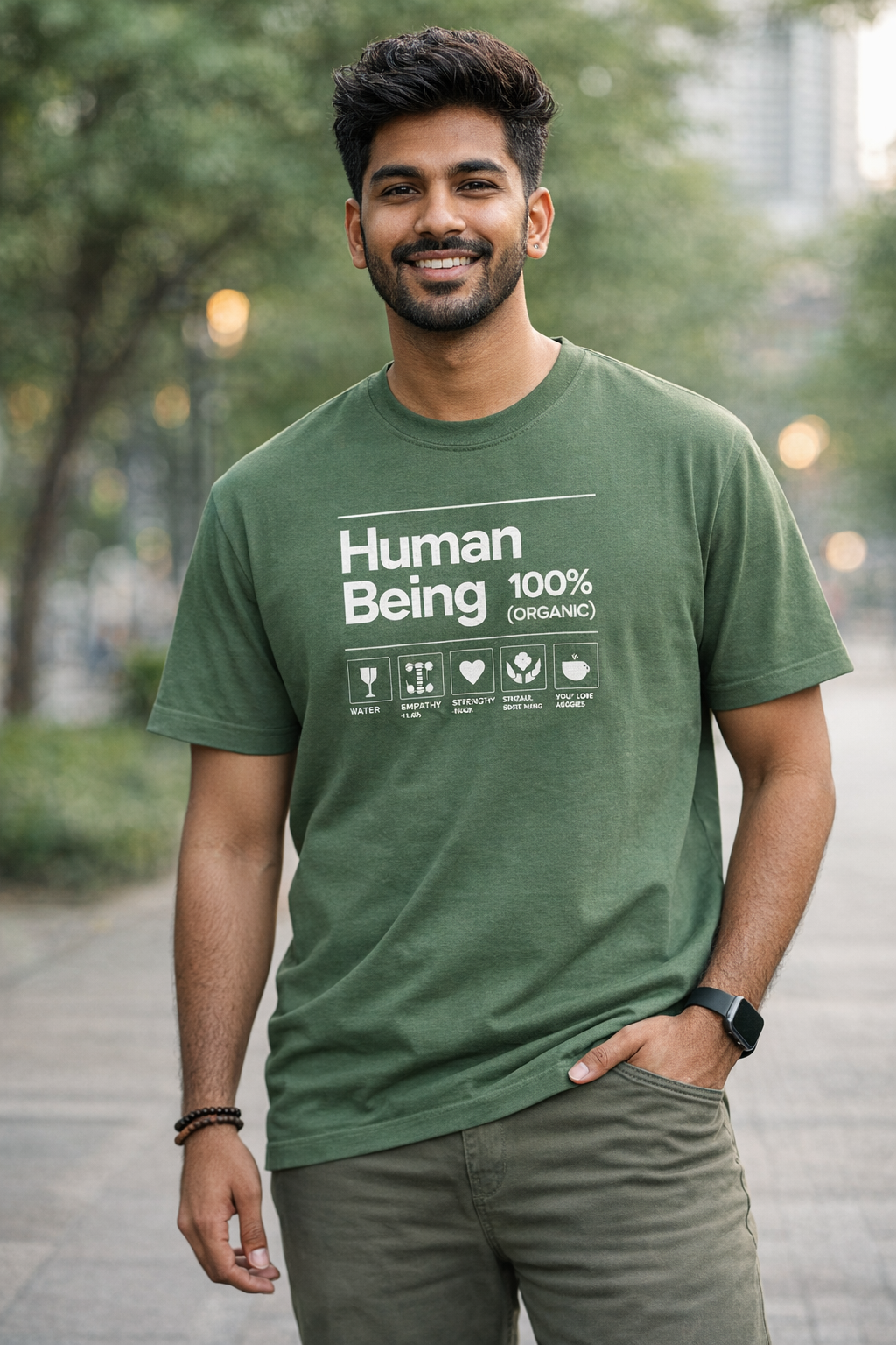 This men’s premium oversized tee is built with a heavier feel and a structured drape for an elevated streetwear look. The “Human Being – 100% Organic” design gives a bold, minimal vibe that works with anything—wear it solo or layer it for a sharp, modern fit.
