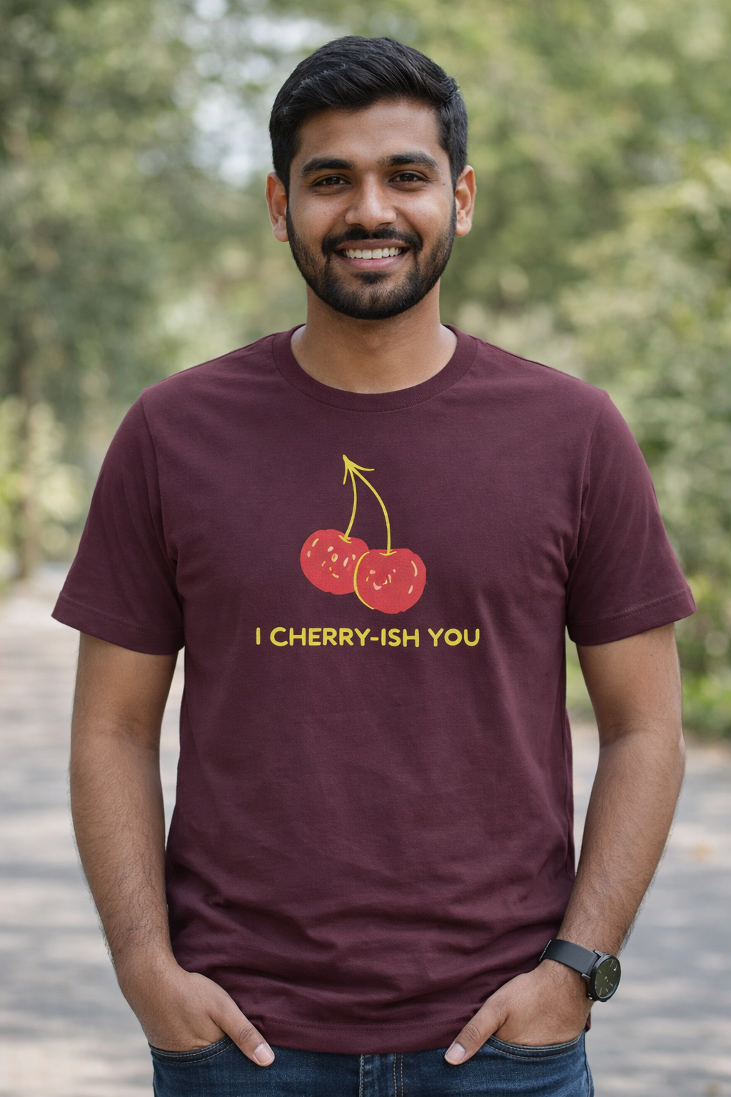 Cute, simple, and a little flirty—this “I Cherry-ish You” unisex t-shirt is perfect for everyday wear or gifting. Made with smooth 180 GSM bio-washed fabric and a classic round neck, it feels soft, breathable, and stays neat thanks to its pre-shrunk single jersey construction. Pair it with jeans, shorts, or joggers for an easy casual look.